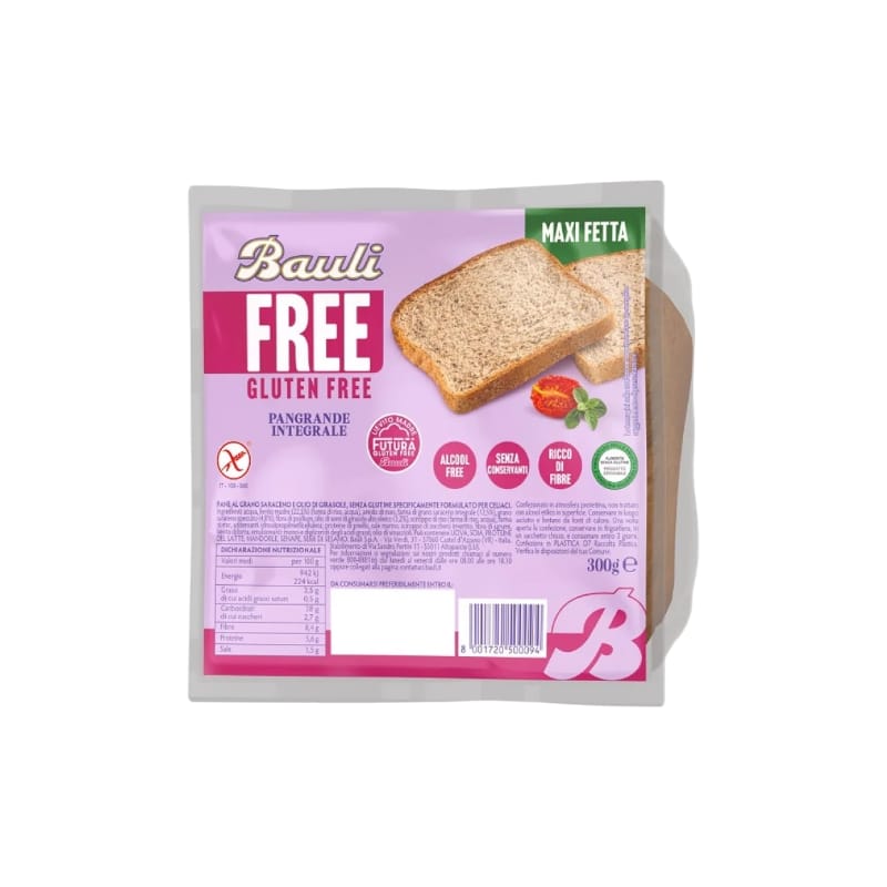 Ingredienti: Acqua, Lievito Madre 22,5% (Farina di Riso, Acqua), Amido di Mais, Farina di Grano Saraceno Integrale 12,5%, Grano Saraceno Spezzato 4,8%, Fibra di Psyllium, Olio di Semi di Girasole Alto Oleico 3,2%, Sciroppo di Riso (farina di riso, acqua), farina di riso, Addensanti (Idrossipropilmetilcellulosa), Proteine di Pisello, Sale Marino, Sciroppo di Zucchero Invertito, Fibra di Agrumi, Lievito di Birra, Emulsionante: Mono e Digliceridi degli Acidi Grassi, Olio di Vinaccioli.