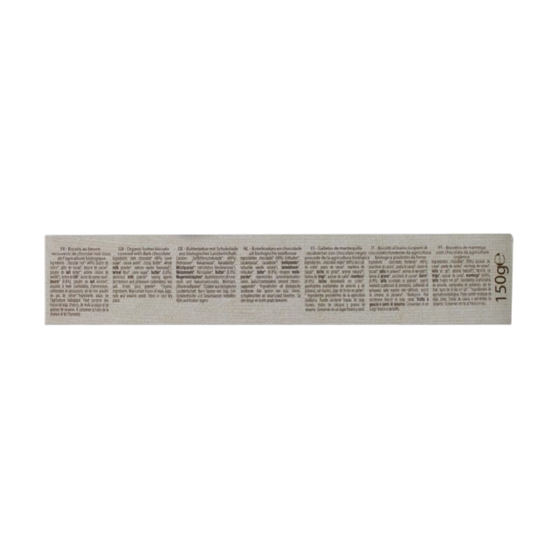 Golosi biscotti al burro ricoperti di cioccolato fondente da agricoltura biologica.