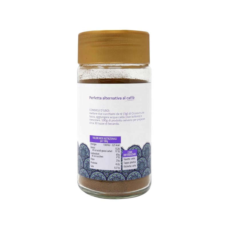 La cicoria solubile è una bevanda ottenuta dalla radice tostata e macinata della pianta di cicoria, spesso utilizzata come alternativa al caffè. È priva di caffeina, il che la rende adatta a chi cerca una bevanda calda più leggera e salutare. Ricca di fibre, minerali come fosforo e magnesio, e inulina, la cicoria solubile favorisce il benessere intestinale e contribuisce a una dieta equilibrata. Ha un gusto leggermente amaro e può essere consumata al naturale o con l’aggiunta di latte per un sapore più morbido. Perfetta per chi desidera un’opzione naturale e priva di conservanti.