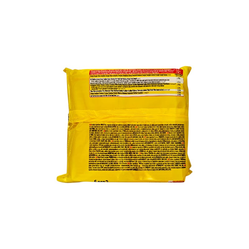 Ingredienti: Farina di frumento, olio di palma, zucchero, sciroppo di glucosio e fruttosio, estratto di malto d’orzo, sale, agenti lievitanti (carbonati di ammonio, carbonati di sodio), regolatore di acidità (fosfati di calcio), sale minerale di potassio, lievito, agente di trattamento della farina (metabisolfito di sodio).