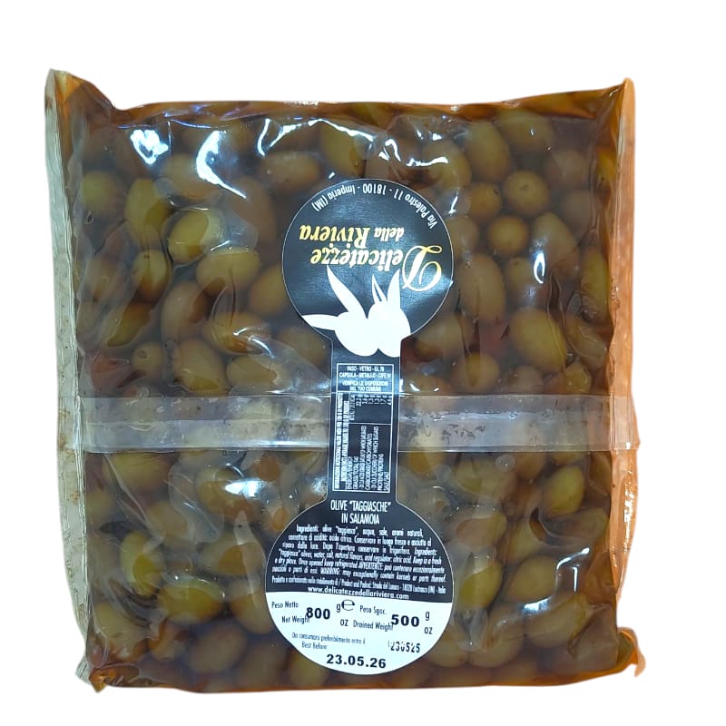 Le Olive Taggiasche Intere in Salamoia sono il frutto pregiato degli olivi della Riviera Ligure, celebri per le loro dimensioni contenute e la caratteristica tonalità nero-verde con sfumature violacee. Succulente, aromatiche e dal gusto delicatamente amarognolo, vengono selezionate con cura e lasciate maturare in salamoia seguendo un’antica ricetta tramandata nel tempo. Il risultato è un prodotto autentico, ricco di storia e tradizione, che racchiude tutta l’essenza del territorio ligure.