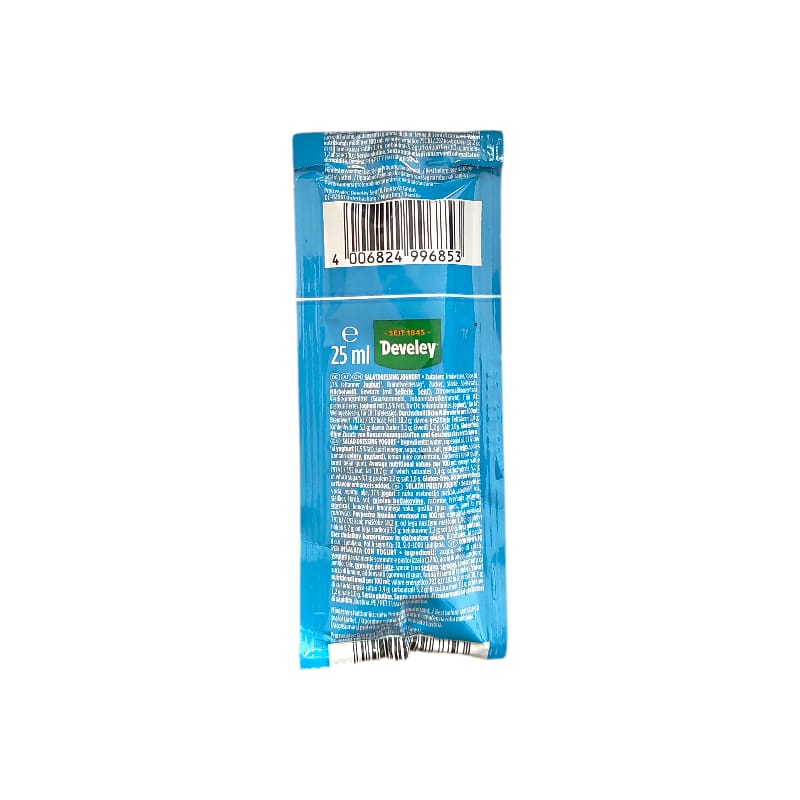 Il Dressing allo Yogurt Develey in formato monodose da 25 ml offre una consistenza cremosa e un gusto fresco, ideale per arricchire insalate e verdure crude. La pratica confezione assicura massima igiene, controllo delle porzioni e freschezza, rendendolo perfetto per il settore horeca, il take-away o i pranzi veloci. Grazie alla sua ricetta equilibrata e senza glutine, rappresenta un condimento versatile e leggero pronto all’uso in ogni occasione.