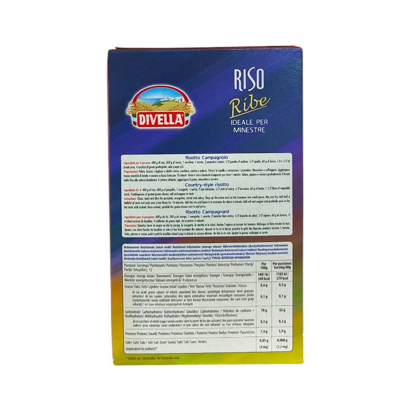 Valori nutrizionali (per 100 g): – Energia: 1481 kJ / 349 kcal – Grassi: 0.6 g – di cui saturi: 0.1 g – Carboidrati: 78 g – di cui zuccheri: 0.3 g – Proteine: 7.4 g – Fibre: 1.4 g – Sale: 0.01 g