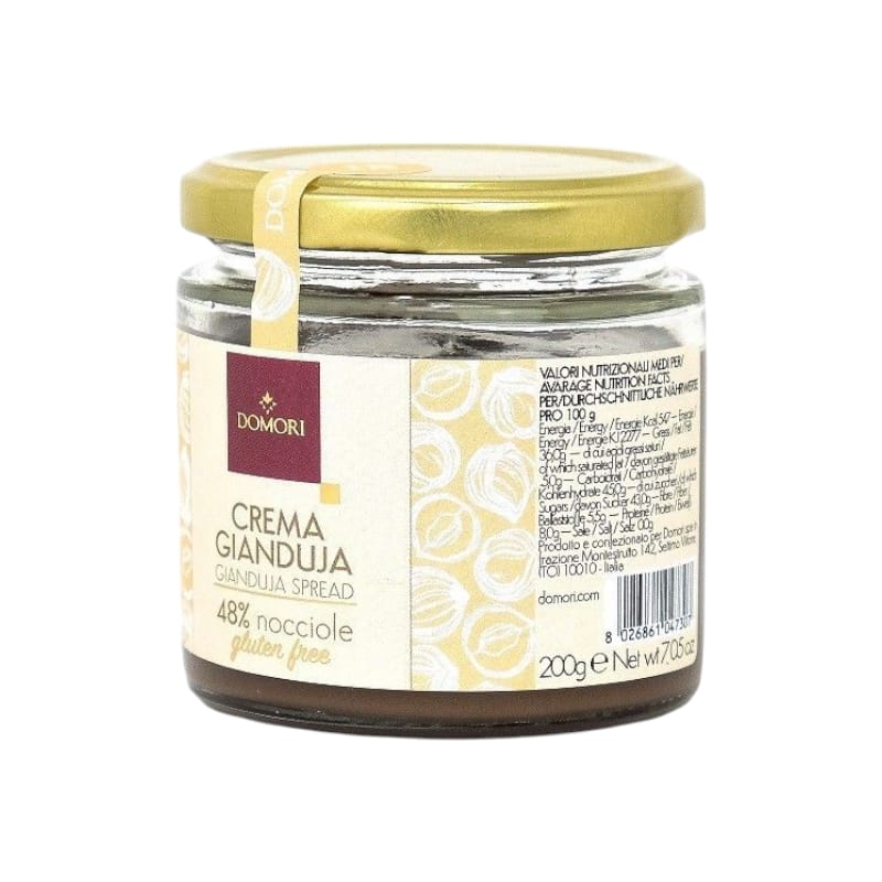 Ingredienti: “Nocciola Piemonte IGP” 48%, Zucchero di canna, cacao in polvere, burro di cacao, estratto naturale di vaniglia, lecitina di soia- Contiene soia e frutta a guscio.