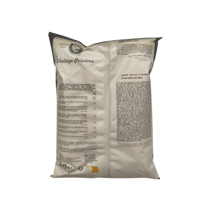 Ingredienti: Patate (70%), olio di girasole, pepe nero e sale di stagionatura (farina di mais, sale marino, spezie (di cui 0,95% di pepe nero), zucchero, estratto di spezie).