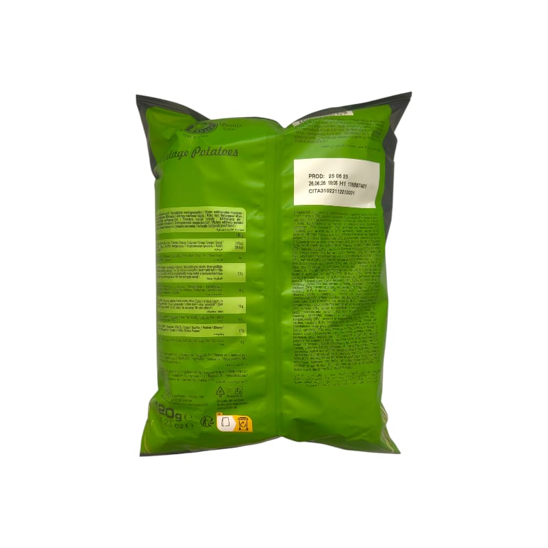 Ingredienti: Patate 65%, olio di semi di girasole 28%, aroma rosmarino e sale 7% (farina di mais, sale, spezie, erbe aromatiche (0.4% rosmarino), zucchero, sale marino, estratto di lievito).