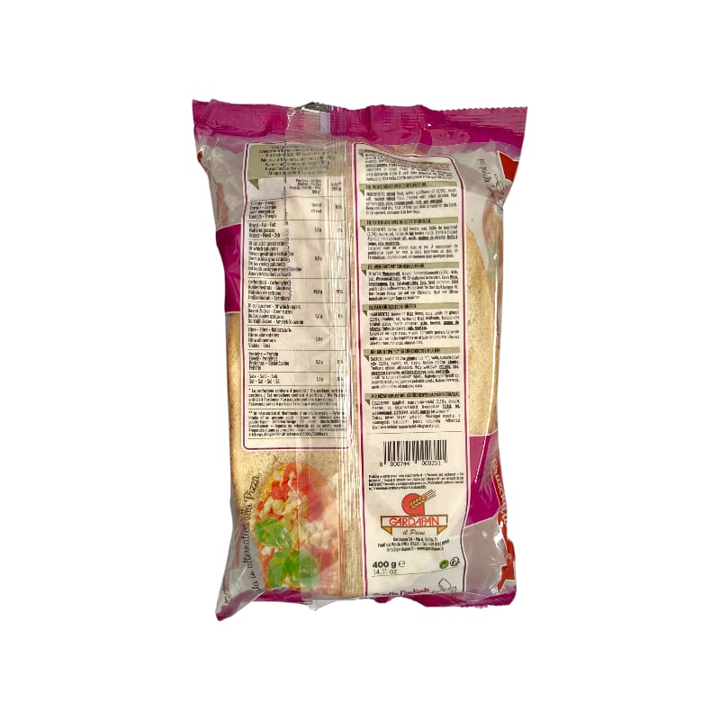 Ingredienti: Farina di grano tenero tipo “0”, acqua, olio di semi di girasole, lievito, sale, farina di grano tenero maltato. Trattato con alcool etilico.