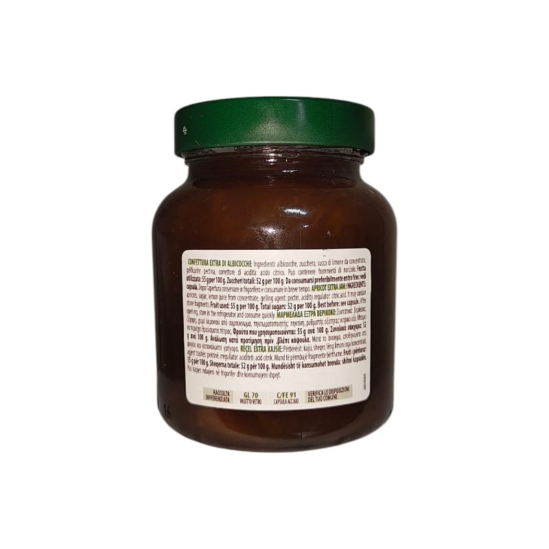 Ingredienti: albicocche , zucchero, succo di limone da concentrato, gelificante: pectina, correttore di acidità: acido citrico. Frutta utilizzata: 55 g per 100 g.