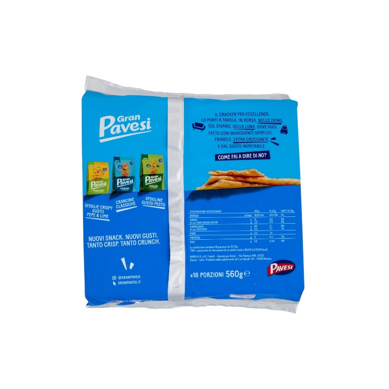Ingredienti: Farina di frumento 94,6g*, Olio di soia, Estratto di malto d’orzo e mais, Sale 1g*, Correttore di acidità: carbonato acido di sodio, Farina d’orzo maltato, Lievito, *per 100g di prodotto finito.