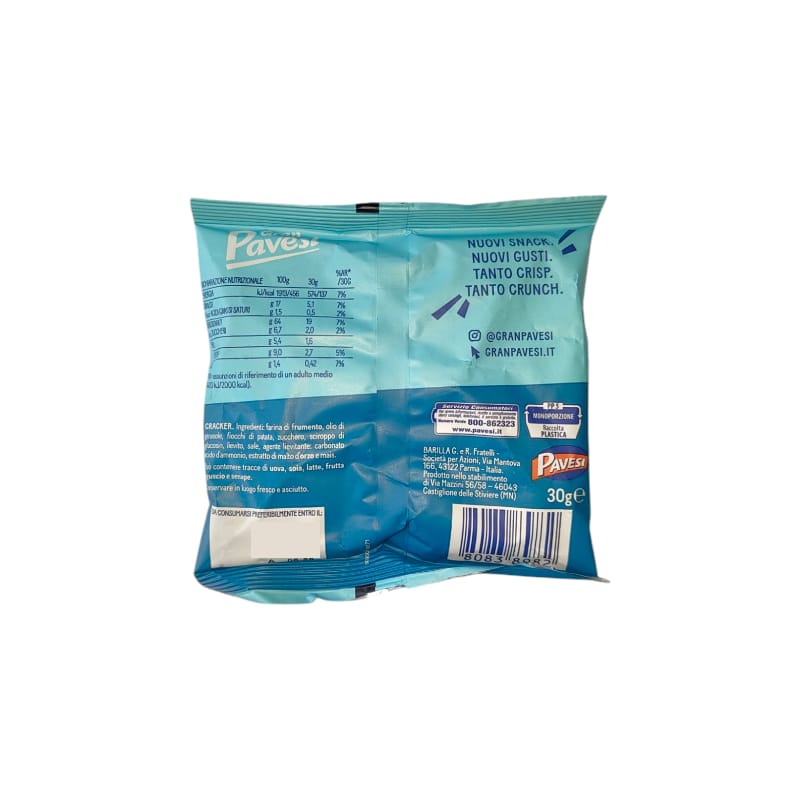 Ingredienti: Farina di frumento Olio di girasole Fiocchi di patata Zucchero Sciroppo di glucosio Lievito Sale Agente lievitante: carbonato acido d’ammonio