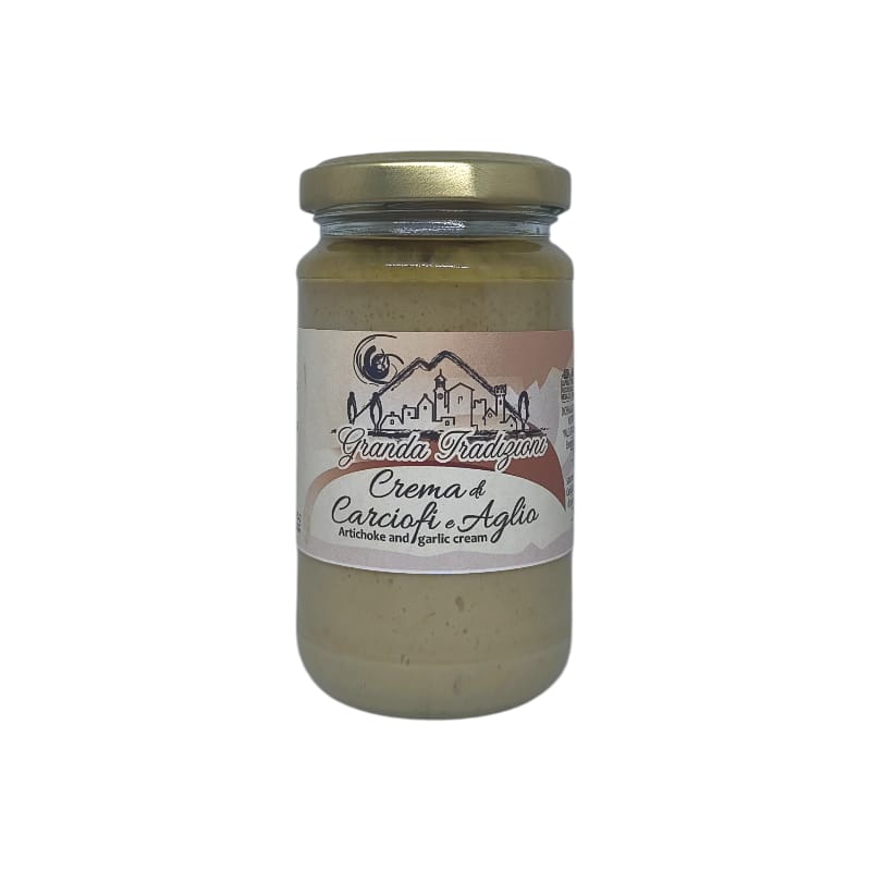 Crema con carciofi e aglio, ideale per crostini caldi, per mantecare un risotto fuori dal comune o come accompagnamento raffinato per piatti di pesce e carni bianche.