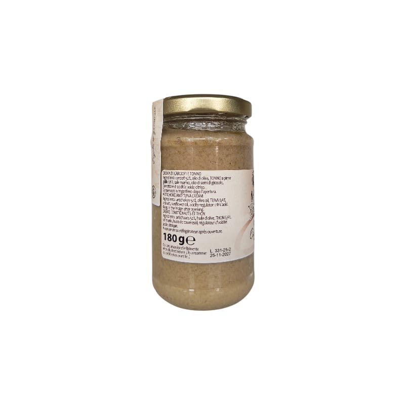 Ingredienti: carciofi 52%, olio di oliva, Tonno a pinne gialle 6,4%, sale marino, olio di semi di girasole, regolatore di acidità: acido citrico.