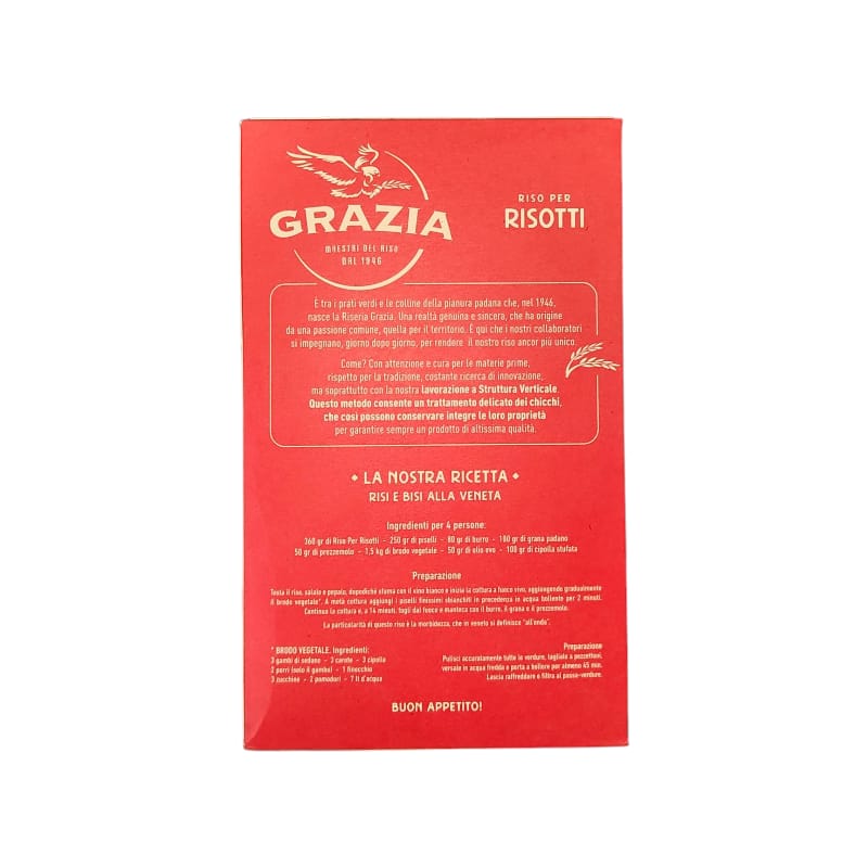 Riso 100% Italiano adatto per una perfetta mantecatura, ideale per la preparazione di tutti i tipi di risotti.