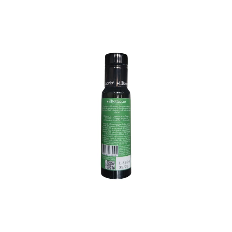 Ingredienti: Olio Extravergine di oliva, aroma naturale di Rosmarino 0,3%, aroma naturale di Pepe nero 0,3%, aroma naturale di Aglio 0,3%