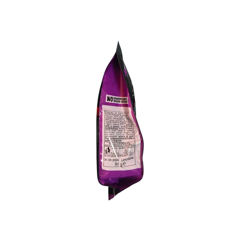 Ingredienti: Ripieno (60% circa): zucchero, oli e grassi vegetali frazionati (palma), cacao magro in polvere (12%), siero di latte in polvere, emulsionante: lecitina di soia; vanillina. Esterno (40% circa): pasta di cacao, zucchero, cacao magro in polvere, burro di cacao, emulsionante: lecitina di soia.