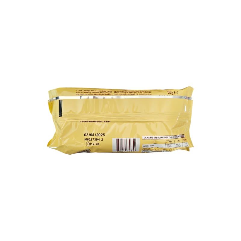 Valori nutrizionali (per 100 g): – Energia: 1688 kJ / 404 kcal – Grassi: 21 g – di cui saturi: 10 g – Carboidrati: 44 g – di cui zuccheri: 2.5 g – Proteine: 8.4 g – Fibre: 2.5 g – Sale: 0.55 g