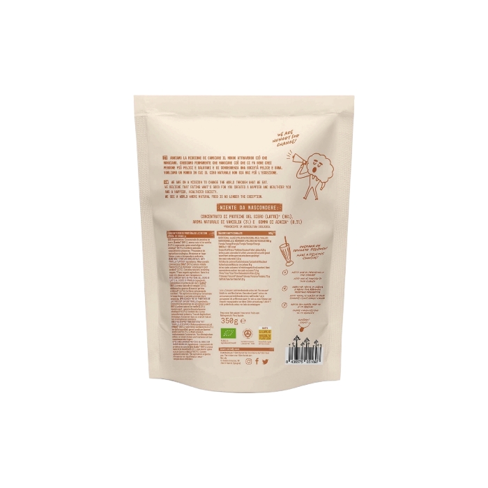 Ingredienti: *concentrato di proteine del siero del LATTE 96%, *aroma naturale di vaniglia 3% e *gomma di acacia (0.7%) *biologico.