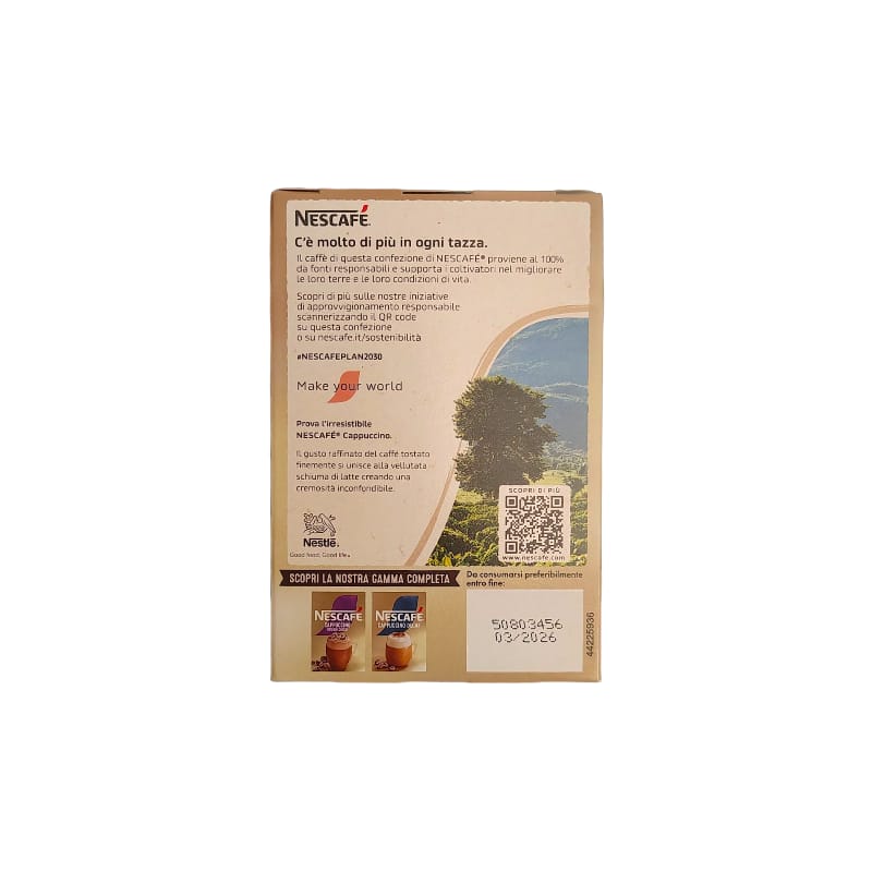 Una confezione pratica con 5 bustine monodose per preparare facilmente un cappuccino cremoso e aromatico. Un mix equilibrato di caffè Arabica e Robusta, arricchito da una schiuma di latte vellutata. Perfetto per una pausa rilassante, basta aggiungere acqua calda.