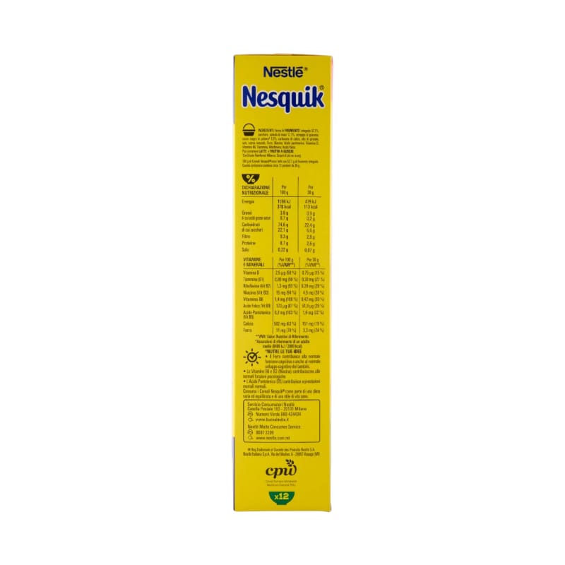 I cereali NESQUIK rendono il latte cioccolatoso e assicurano una colazione ricca di gusto e di importanti nutrienti, in quanto contengono vitamine e minerali. Tutta la semplicità degli ingredienti che conosci e il gusto inconfondibile di NESQUIK.