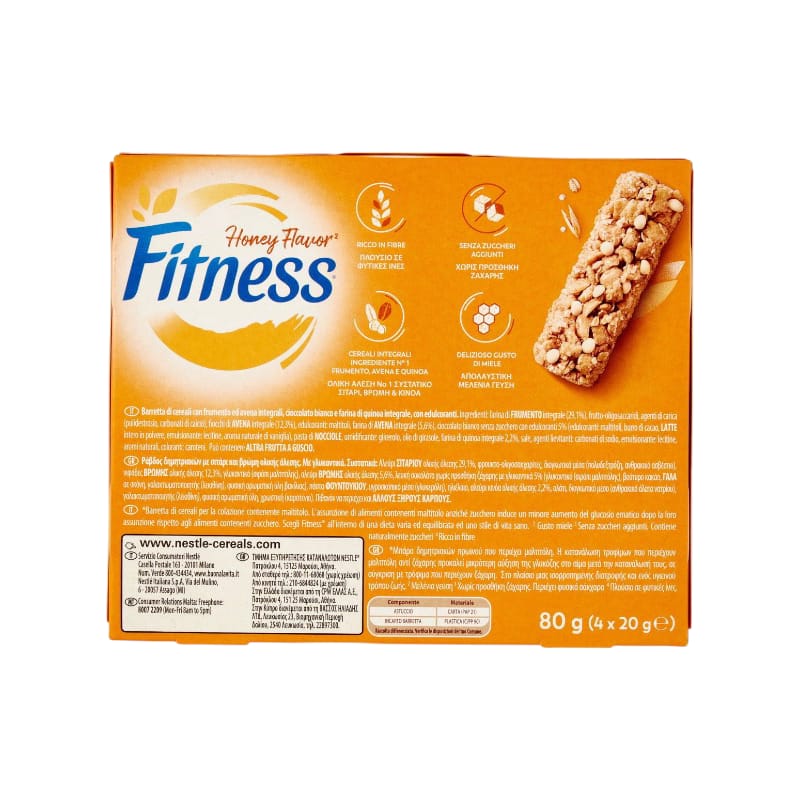 Ingredienti: : farina di FRUMENTO integrale (29,1%), frutto-oligosaccaridi, agenti di carica (polidestrosio, carbonati di calcio), fiocchi di AVENA integrale (12,3%), edulcoranti: maltitoli, farina di AVENA integrale (5,6%), cioccolato bianco senza zucchero con edulcoranti 5% (edulcoranti: maltitoli, burro di cacao, LATTE