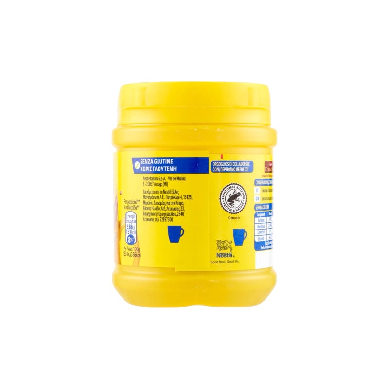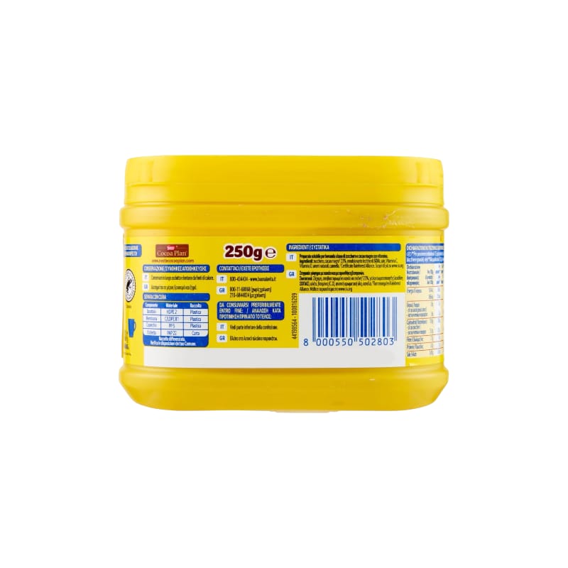 Ingredienti: Zucchero Cacao magro¹ 23% Emulsionante lecitine di soia Sale Vitamina C Vitamina D Aromi naturali Cannella. ¹Certificato Rainforest Alliance