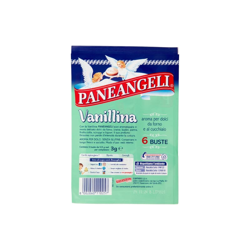 La PaneAngeli Vanillina, in buste da 3 g, è un aroma versatile e senza glutine che arricchisce dolci e dessert con una fragranza delicata, resistente alla cottura.
