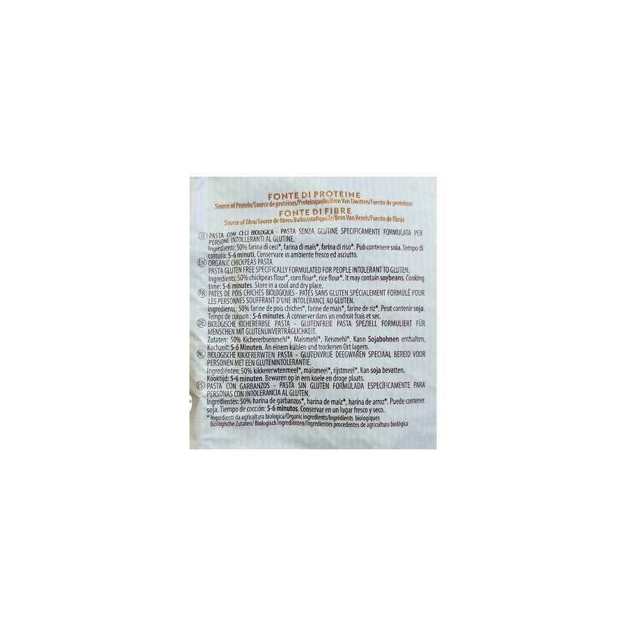 Ingredienti: 50% farina di ceci*, farina di mais*, farina di riso*. * da agricoltura biologica