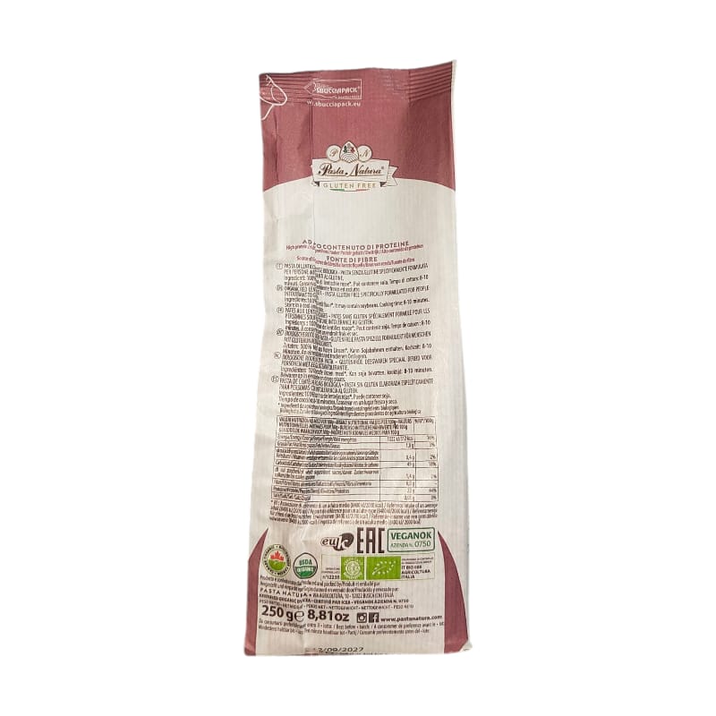 La pasta con farina di lenticchie rosse PASTA NATURA è un primo piatto sano, colorato e ricco di proteine vegetali. Il suo vivace colore aranciato stimola l’appetito, soprattutto nei bambini, e rende ogni ricetta più invitante. È naturalmente priva di glutine, quindi adatta a chi soffre di celiachia o segue un’alimentazione equilibrata. Grazie alla sua consistenza ruvida e porosa, trattiene bene i condimenti e mantiene la cottura, offrendo piatti sempre al dente. Il gusto delicato delle lenticchie rosse si abbina facilmente a ingredienti sia tradizionali che esotici, come verdure, spezie o legumi. Inoltre, è una fonte preziosa di fibre, che favoriscono la digestione e il benessere intestinale. In sintesi, è una pasta nutriente, versatile e perfetta per chi cerca gusto e salute in un solo piatto.