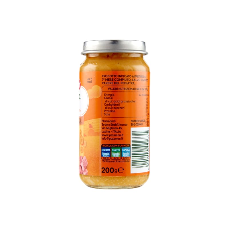 Plasmon La Pappa Verdure, Manzo e Pastina 200g è un alimento completo per l’infanzia, pensato per i bambini a partire dal 7° mese. È una pappa pronta che unisce verdure selezionate, prosciutto e pastina per offrire un pasto nutriente, bilanciato e facile da digerire.