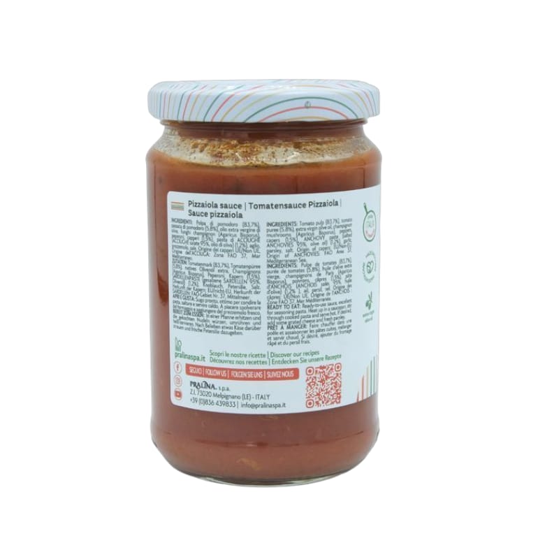 Il sugo alla pizzaiola è realizzato con pomodori freschi, capperi e olive, seguendo la più autentica tradizione italiana e senza l’aggiunta di conservanti. Confezionato in pratici barattoli, è un condimento pronto all’uso, perfetto per arricchire ogni tipo di pasta o come base per deliziosi secondi piatti di pesce alla pizzaiola. Ideale per chi ha poco tempo, ma non vuole rinunciare al sapore genuino e alla qualità artigianale firmata Pralina.