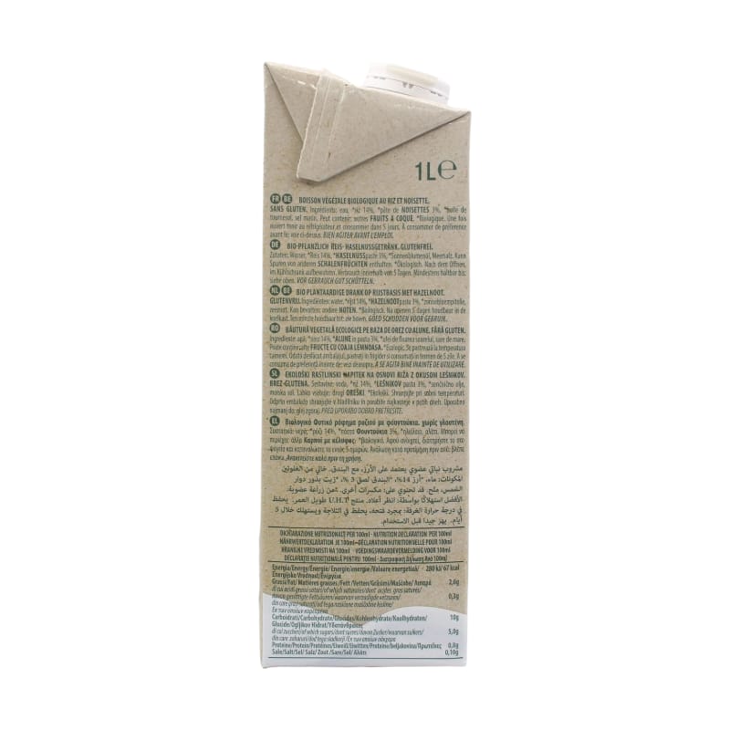 Ingredienti: acqua, *riso 14%, *NOCCIOLE in pasta 3%, *olio di semi di girasole, sale marino. *biologico