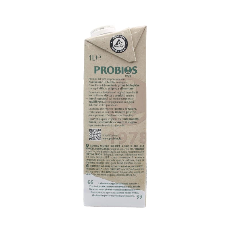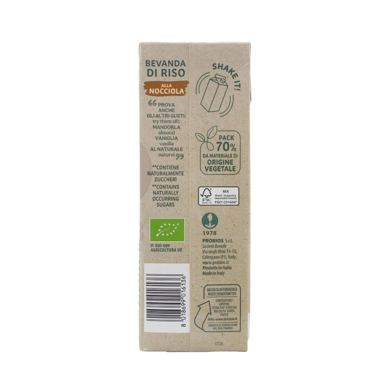 La bevanda vegetale di riso alla nocciola Probios nasce da riso 100% italiano, coltivato con cura. Naturalmente priva di lattosio e garantita senza glutine, è una scelta gustosa e inclusiva per tutti. Perfetta da sorseggiare calda o fredda, si presta anche a tante ricette creative in cucina.