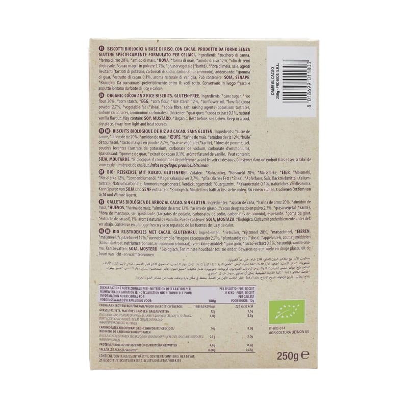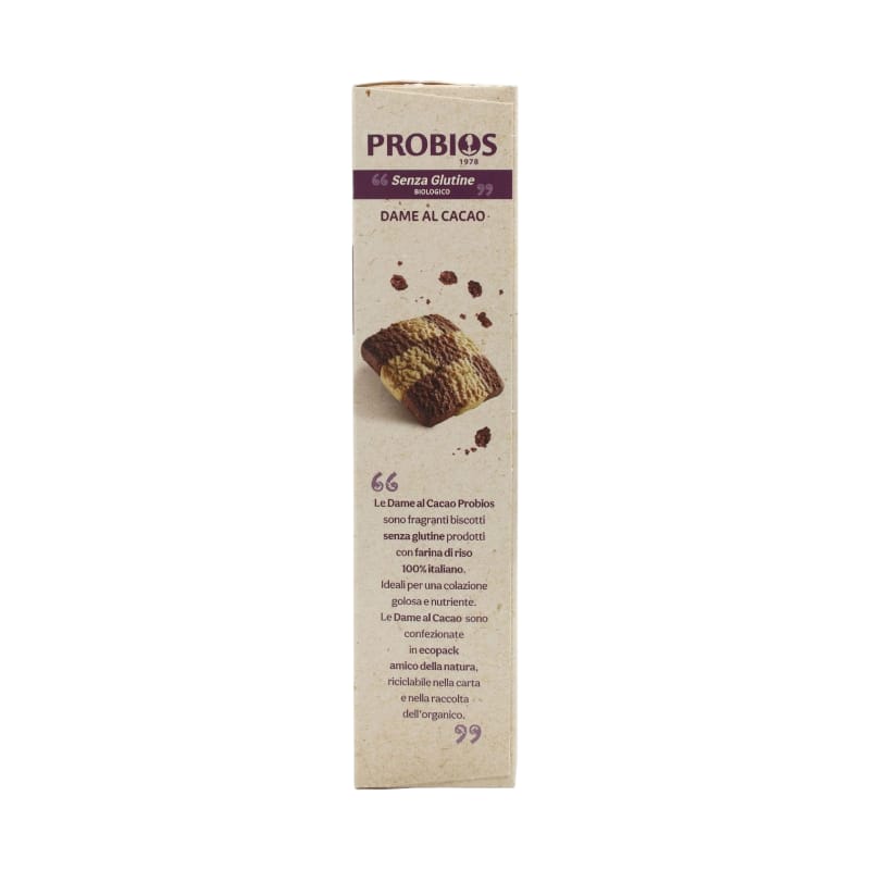 Le Dame al Cacao Probios sono biscotti fragranti e senza glutine, preparati con farina di riso 100% italiano. Il loro gusto intenso e la consistenza croccante li rendono perfetti per una colazione ricca di sapore e benessere.