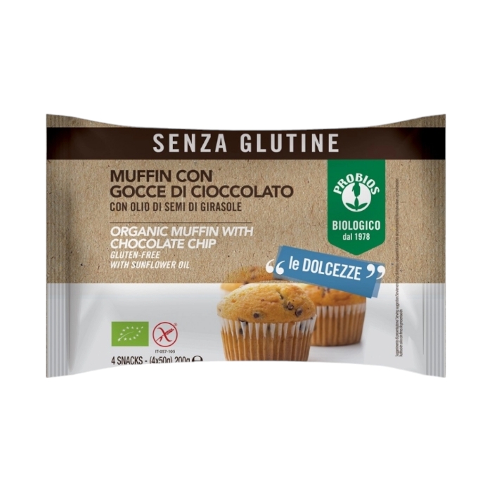 I Muffin Biologici con gocce di cioccolato sono soffici merendine ideali per la prima colazione, con olio di semi di girasole e senza olio di palma.