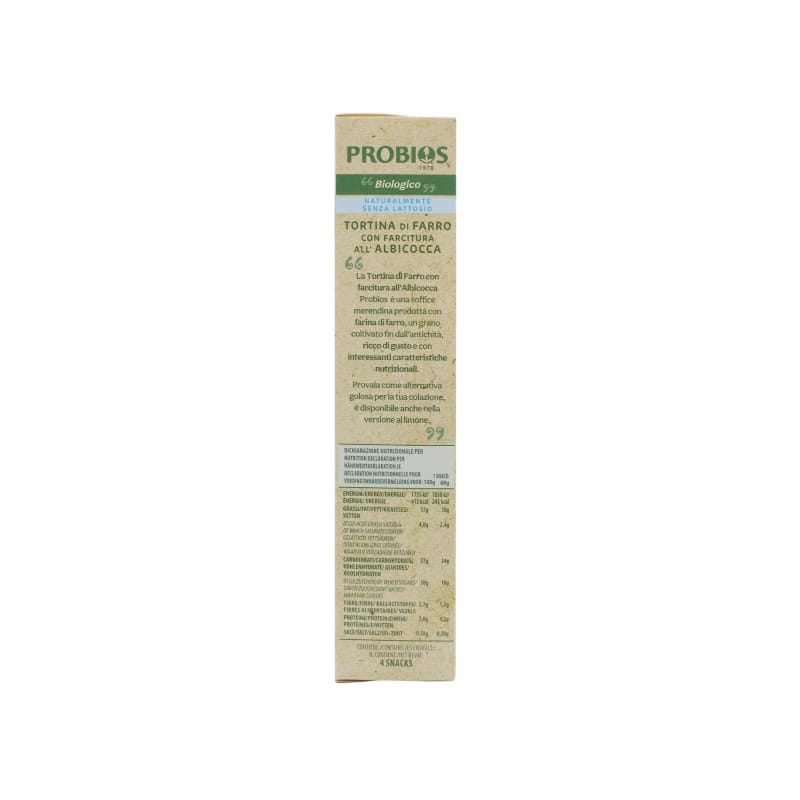 La Tortina di Farro Probios è un soffice piacere racchiuso in un impasto di farina di farro italiano, farcito con una deliziosa confettura di albicocca. Naturalmente senza lattosio e dolcificata con zucchero di canna, è la merenda biologica ideale per chi cerca genuinità e leggerezza. Provala per una pausa dolce e naturale, pronta da gustare in ogni momento della giornata.
