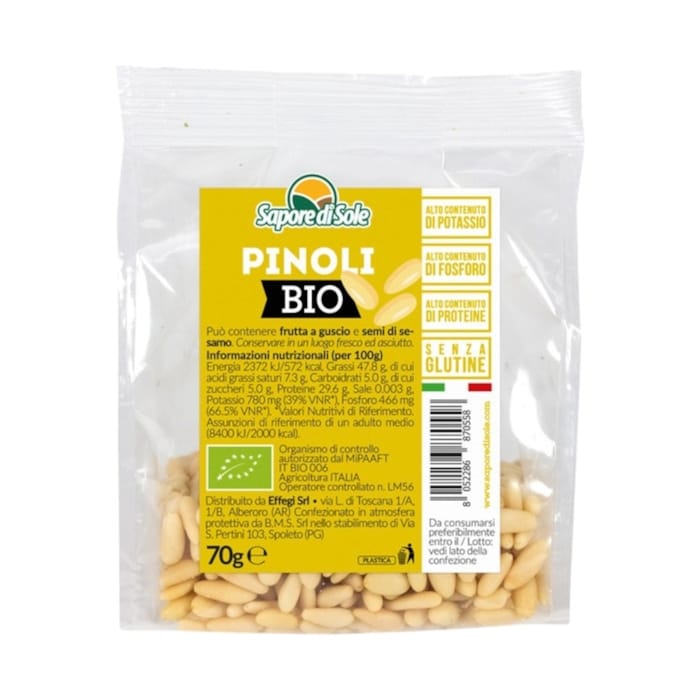 I pinoli sono ottimi da soli come semplice e nutriente snack, sono ideali come base per la preparazione di salse, dolci, per arricchire piatti salati. Hanno un alto contenuto di grassi, prevalentemente insaturi, con un’importante percentuale di acido linoleico (Omega-6), vantano un buon contenuto proteico e sono ricchi di fibre, vitamine (E e PP) e minerali (calcio, fosforo, ferro e potassio). Perfetti per chi pratica sport o per affrontare periodi di stress e stanchezza.
