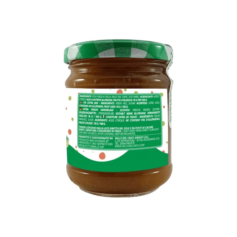 Ingredienti: Fichi freschi della Valle del Crati (76,1%), zucchero. Acidificante: Acido citrico.